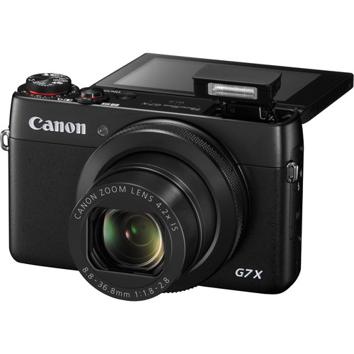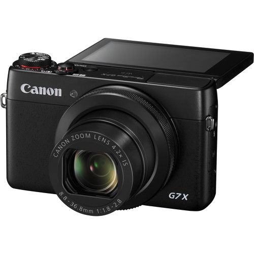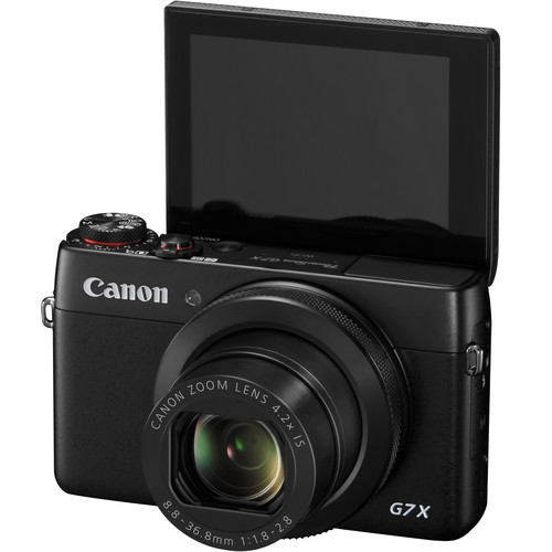 Featuring a large 1″ 20.2-megapixel High-Sensitivity CMOS sensor and the powerful DIGIC 6 image processor the PowerShot G7 X Digital Camera from Canon embodies the HS SYSTEM that allows for dramatically improved low-light performance and ISO sensitivities up to 12,800. These abilities combined with a fast 4.2x f/1.8-2.8 optical zoom lens, equivalent to 24-100mm in the 35mm format, provide users with a responsive camera capable of producing highly detailed imagery in a wide range of situations. The lens also features Intelligent Image Stabilization for reducing the effects of camera shake. Additionally, it features a “selfie-ready” multi-angle 3.0″ capacity touchscreen LCD screen with a 1,040k-dot resolution.