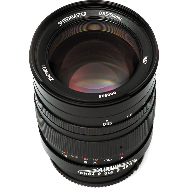 - Exceptionally fast 50mm lens features an f/0.95 maximum aperture for selective focus control and working in low-light conditions.