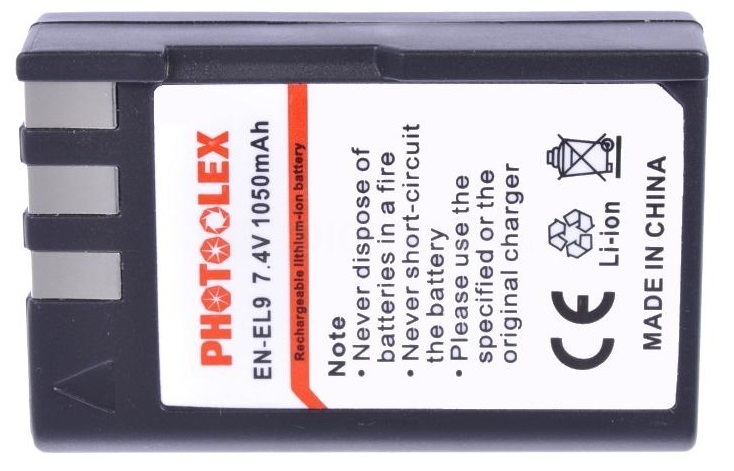 Photoolex Battery EN-EL9 / EN-EL9A have the latest chip. It is made of high-quality lithium-ion cells with an actual capacity of 1050mAh.