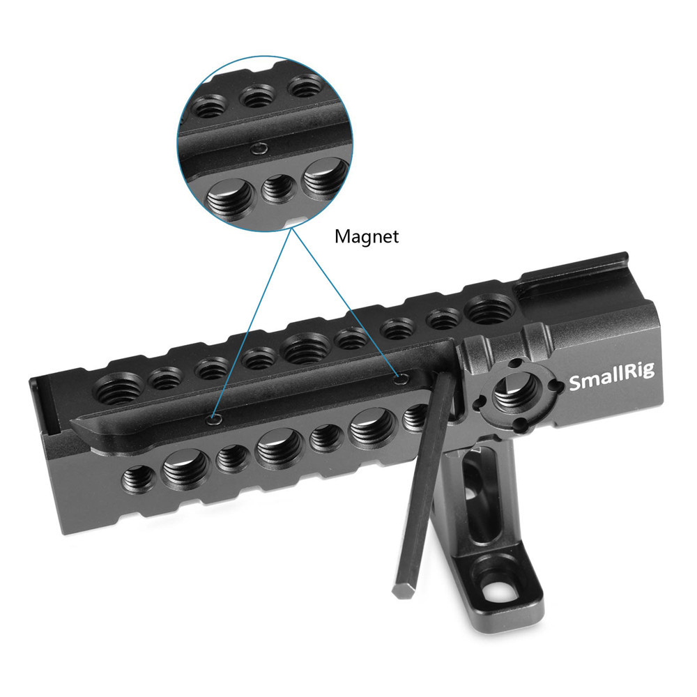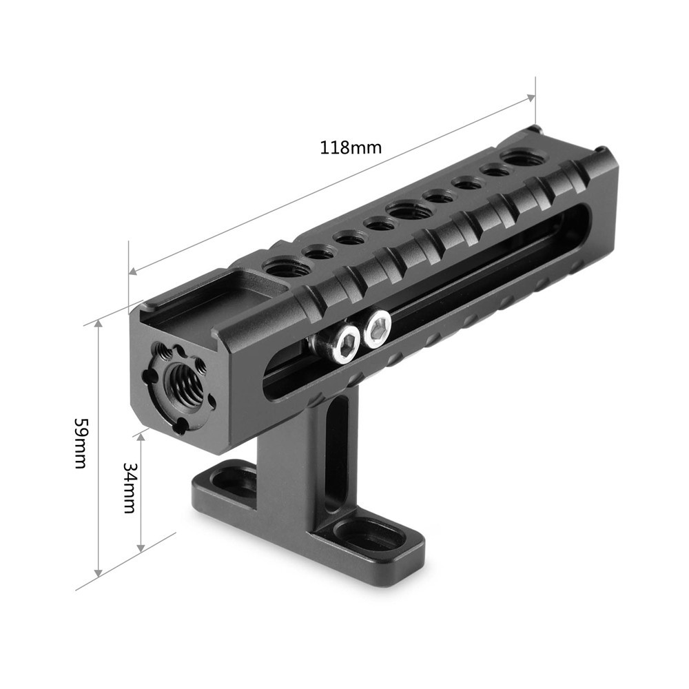 SmallRig Camera/Camcorder Action Stabilizing Universal Handle 1984 is a universal top mounting handle for moving shoots. It bolts on to two 1/4’’-20 holes spaced 36mm apart center for secure camera carrying. Two shoe mounts are found on the top and at the back for attaching on cameras lights and microphones. Accessories can be attached using the multiple 1/4’’-20 and 3/8’’-16 holes in standard spacing and two Arri standard accessory mount. Additionally, we specially offer a 1/4’’ spanner for free access. It is quite convenient when you need to adjust the handle forwards and backwards for camera and rigs balance.