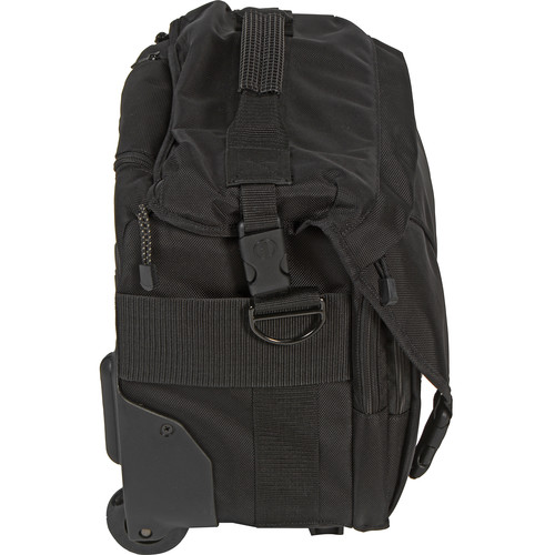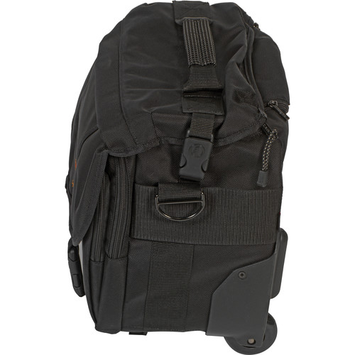 The 5261 features a weather-protected Speed Pocket on the front flap keeps filters, tickets, and other accessories available for quick access. The telescoping handle opens and closes with the push of a button and stows away in a zippered pocket when not in use. Ball bearing, in-line skate wheels ensure a smooth, stable ride. When rolling is not an option, the EasyGrip carrying handle and adjustable, removable shoulder strap provide quick carrying solutions. This bag accepts Modular Accessory System (M.A.S.) and Strap Accessory System (S.A.S.) optional accessories.
