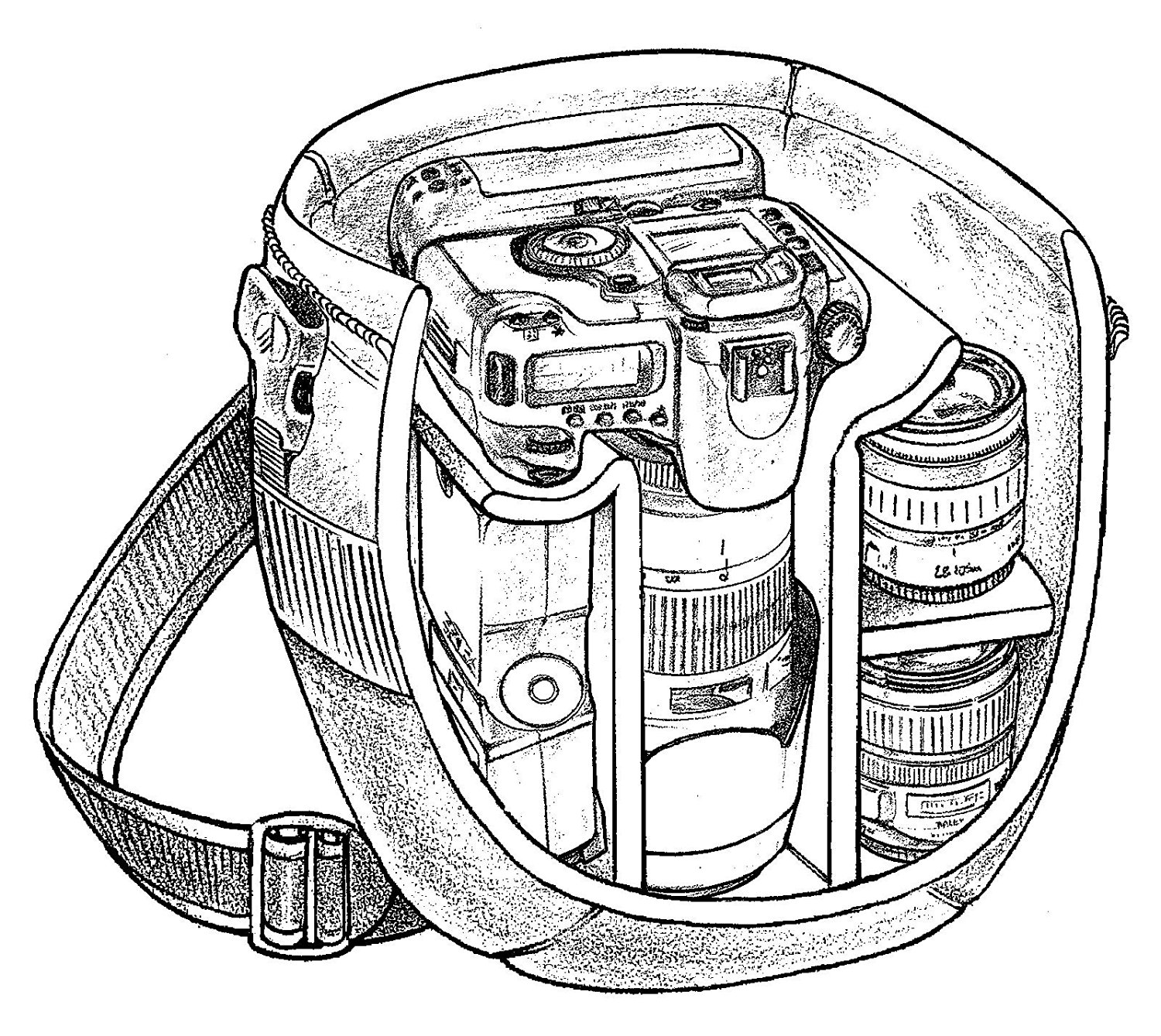 - Holds a pro DSLR with a grip (such as Canon’s 5D Mark II or Nikon’s D700) and an 8″ zoom lens attached, two extra lenses and a flash.